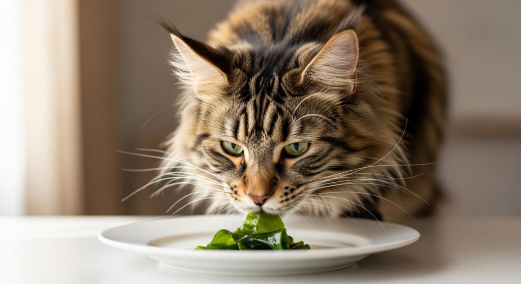 Some commercial cat foods include controlled, small amounts of specific seaweed types (like kelp or spirulina) for their trace mineral content or to support immune health. These are carefully formulated by pet nutritionists, unlike human-grade snacks.
