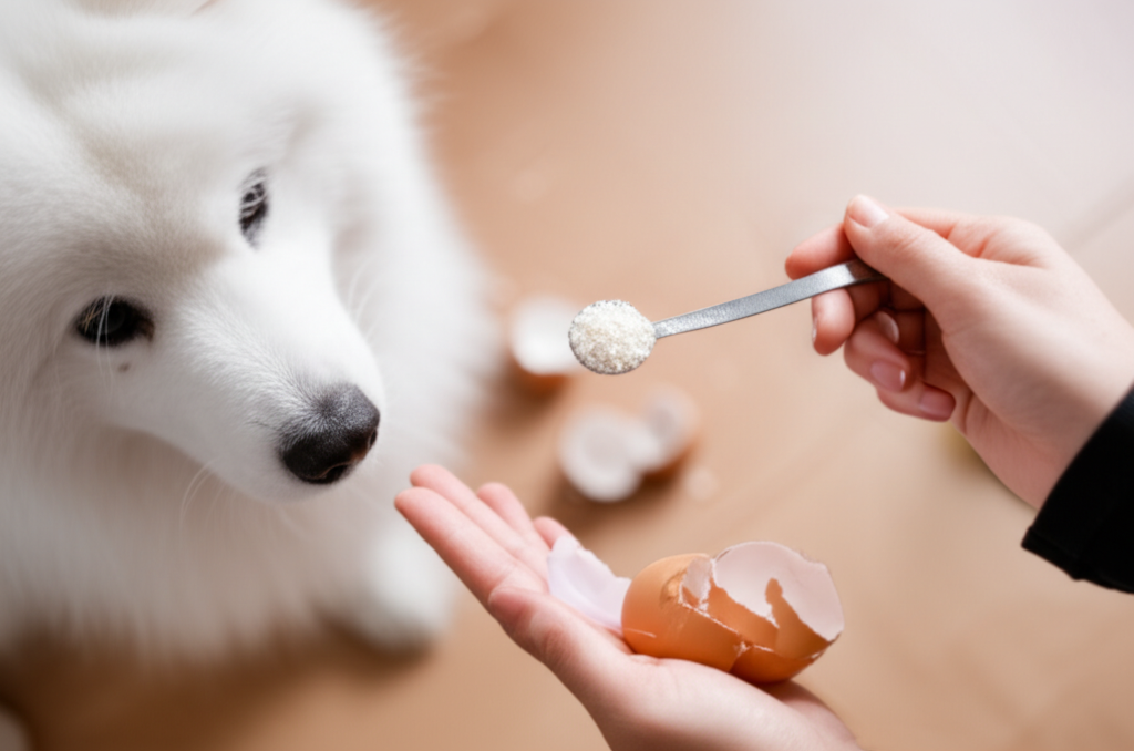 Whole or crushed eggshells can cause physical injury from sharp edges. Raw eggshells carry salmonella risk. Too much calcium supplement (especially for puppies or large breeds) can cause skeletal issues. Dogs on complete commercial diets generally don’t need calcium supplementation.
