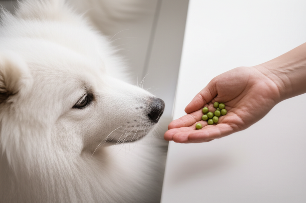 Plain peas are a safe, nutritious occasional treat for most healthy dogs — low calorie, packed with vitamins, and commonly found in commercial dog food. Keep it to fresh or frozen (never canned), serve in small amounts, and avoid entirely for dogs with kidney issues.