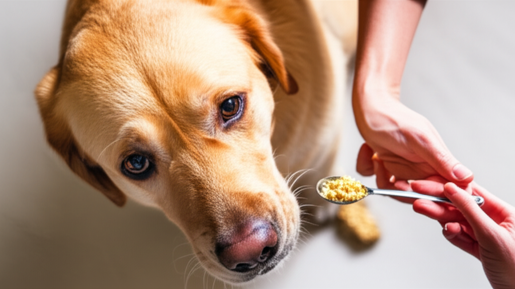 Peel fresh ginger root and finely grate it. Mix the tiny measured amount into your dog’s regular food or a small amount of plain pumpkin. Never use ginger powder (more concentrated, harder to dose) or ginger essential oil. You can also make a weak ginger tea — steep one small slice in hot water, cool completely, then add a teaspoon to their water bowl. Start well below the recommended amounts and monitor closely for any adverse reactions.